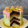 Torta Pistacho porciónBizcochuelo húmedo de chocolate con mousse de pistacho, mousse de chocolate y crema de frambuesas$9,200 -